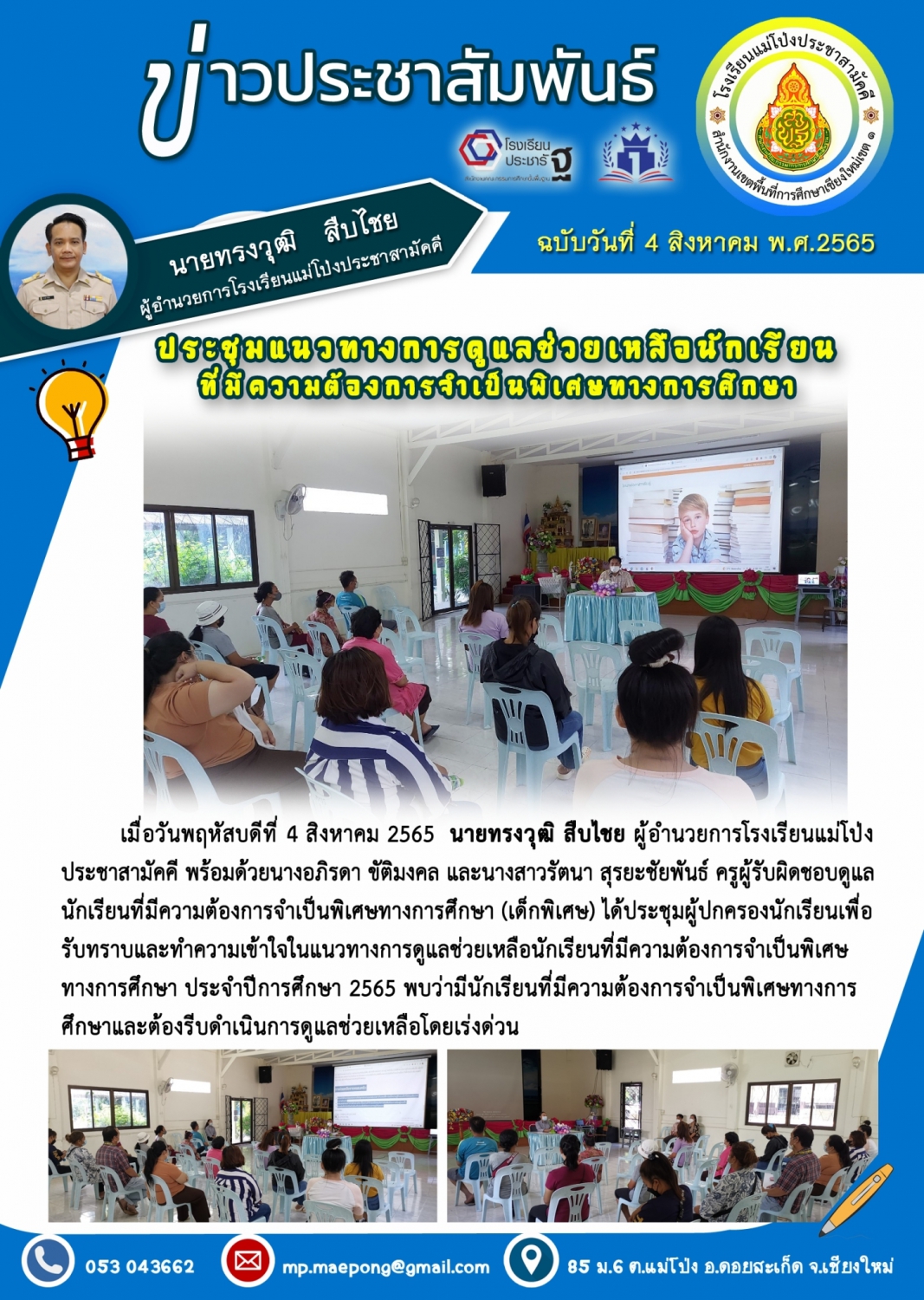 ประชุมแนวทางการดูแลช่วยเหลือนักเรียนที่มีความต้องการจำเป็นพิเศษทางการศึกษา